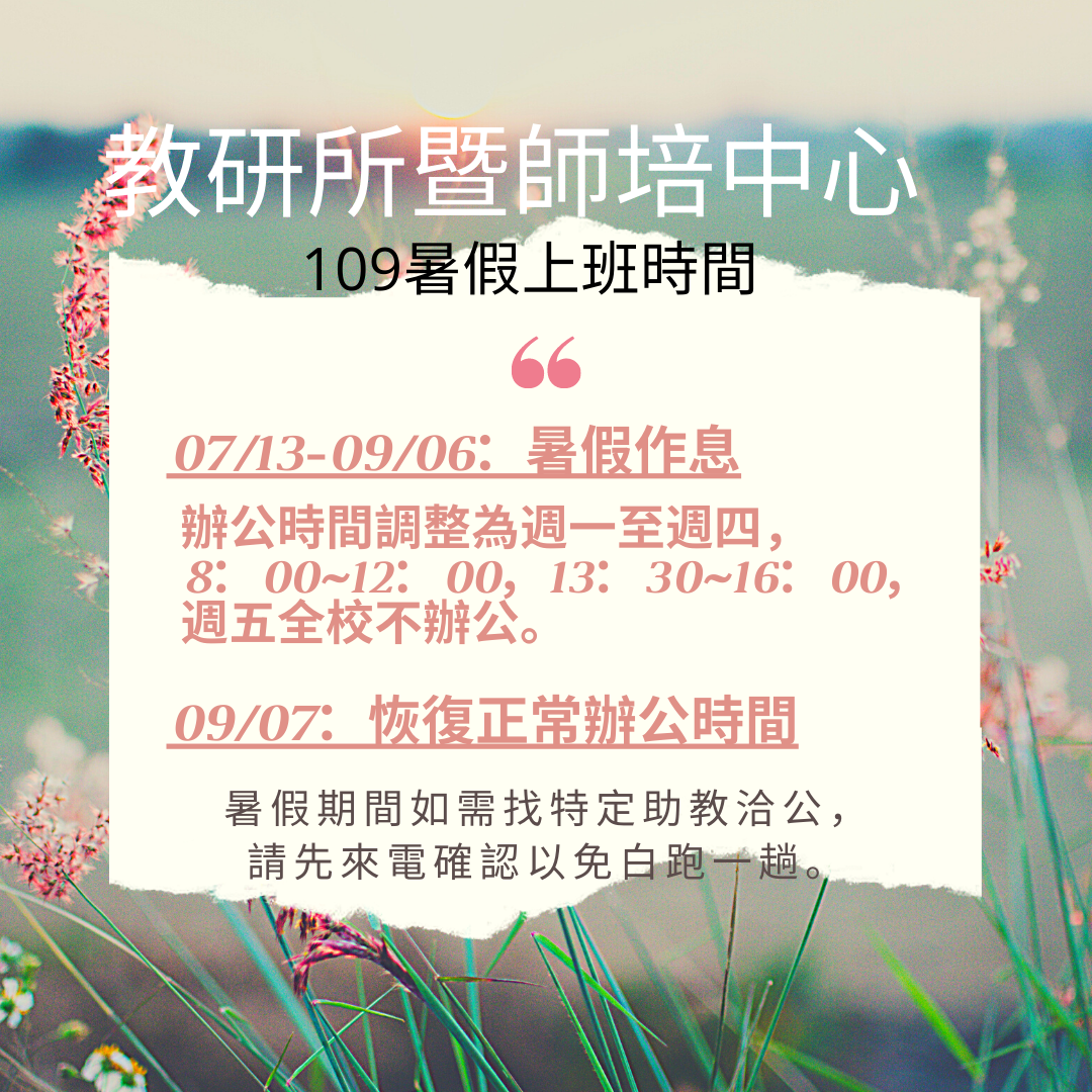 東海大學109暑假上班時間