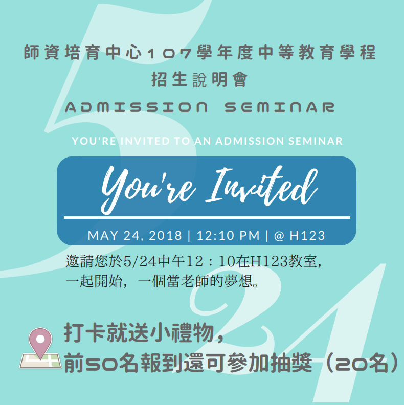 師培中心107學年度中等教育學程招生說明會(5/24場)